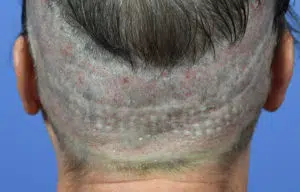 The existence of too much scar tissue in the donor area can also prove problematic. Too much scar tissue decreases a patient’s scalp mobility, making a subsequent strip excision difficult, and it adversely alters the connective tissue around hair follicles making follicular unit extraction challenging. Significant scarring may also become a cosmetic problem that requires the surgeon to leave a significant amount of hair in the donor area just to mask it. The donor supply can also be depleted by transplanting hair too aggressively in single regions, paying no mind to future hair loss.